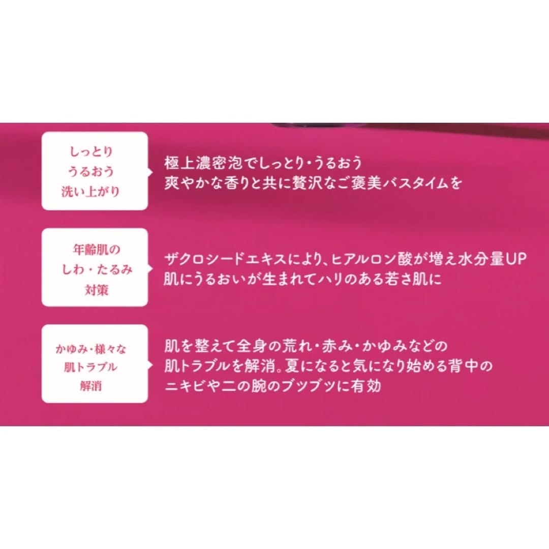 | 特徴 | 成分重視を追求したザクロシード美容! アスタキザクローボディケアソープは 敏感肌・脂性肌・乾燥肌 こだわりの贅沢成分 今まで満たされなかった肌へ ⚠️現在ネットショップ及びドラッグストア、量販店において、不正転売が発生しております。