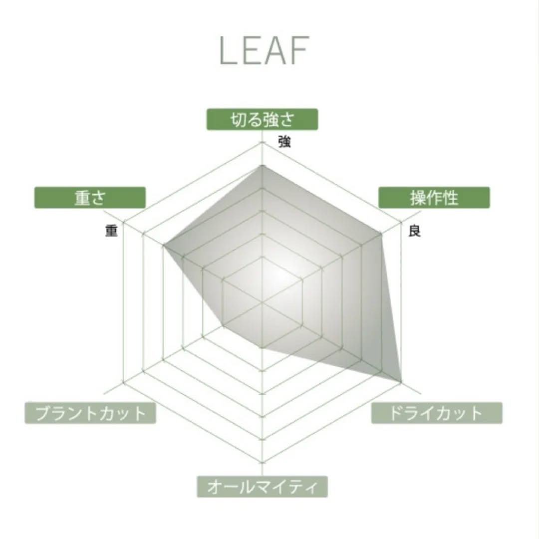 リーフは 🌱大きく弧を描くリーフ葉でスムーズな逃げ! 🌱髪にダメージを残さない鋭い刃! 🌱柔らかく気持ちいい切れ 🌱リーフ効果を引き出すNEWハンドル! 🌱葉っぱみたいなかわいい刃のカタチ のシザーです✂️
